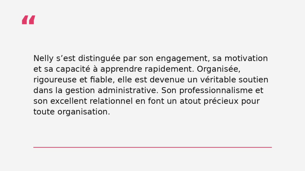 Mais surtout, j’y ai appris, grandi, évolué et acquis des valeurs fortes : l’écoute, le respect du client, l’organisation, le sens du détail, la transparence, la polyvalence, le respect des procédures et de la confidentialité.